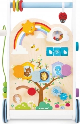 De houten loopwagen met activiteiten is ontworpen om niet alleen leuk, maar ook leerzaam te zijn. Met zijn hulp leren kinderen niet alleen lopen, maar ontwikkelen ze ook hun zintuiglijke vaardigheden.