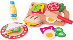 In de set vind je alles voor het bereiden van een smakelijke sandwich: een baguette, sneetjes brood, mayonaise, sla, komkommer, kaas, ei en tomaat, aangevuld met een bord, snijplank en mes. De materialen zijn afkomstig uit verantwoorde bronnen en het speelgoed voldoet aan Europese veiligheidsnormen, zodat je erop kunt vertrouwen.