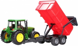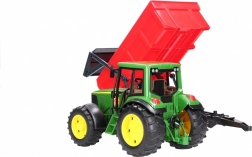 De set met JOHN DEERE-tractor en functionele kiepwagen biedt kinderen een realistische ervaring van boerderijwerk. De tractor is gedetailleerd uitgevoerd, heeft een openende motorkap, een bestuurbare vooras via het verlengde stuur in de cabine en opvallende geprofileerde banden voor een natuurgetrouwe look en sporen.