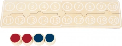 Kleurige fiches en een overzichtelijk bord met de cijfers 1–20 maken het kinderen gemakkelijk om sommen te leggen en de resultaten voor zich te zien.