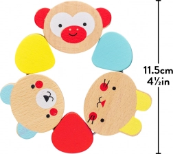 De houten bijtring is ontworpen voor kleine handjes die graag veilig verschillende texturen en vormen ontdekken. Hij is perfect tijdens de doorbraak van de eerste tandjes dankzij de natuurlijke materialen en waterverdunbare verven, wat veilig gebruik garandeert.