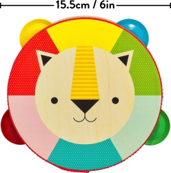 Deze hoogwaardige houten tamboerijn van populierenmultiplex maakt beginnende muzikanten en hun ouders blij. Het lichte en comfortabele handvat, de veilige plantaardige verven en de lak op waterbasis zorgen voor onbezorgd speelplezier. Het vrolijke leeuwenmotief en de krachtige kleuren ondersteunen het gevoel voor ritme, kleurherkenning en motorische vaardigheden.