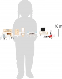De stijlvolle en tijdloze SMALL FOOT meubelset verandert elk poppenhuis in een knus thuis. De combinatie van natuurhout en wit oogt fris en modern, details zoals kussentjes, lampjes en een spiegel geven het spel realisme. De onderdelen zijn aangepast aan kinderhandjes en staan bekend om hun stevigheid en duurzaamheid.