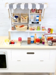 Perfect als aanvulling op een kinderkeuken, winkel of kraam. Kinderen kunnen “boodschappen doen”, sorteren en opbergen, hun woordenschat uitbreiden en leren over gezond eten. Veilige materialen en een gladde afwerking zorgen voor comfortabel en veilig gebruik.