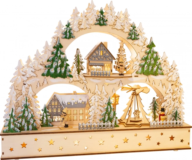 Ambachtelijke uitstraling, precieze uitsnijdingen van bomen en huisjes en de natuurlijke houttint maken van de boog een opvallend middelpunt van je kerstdecoratie in het raam of op het dressoir.