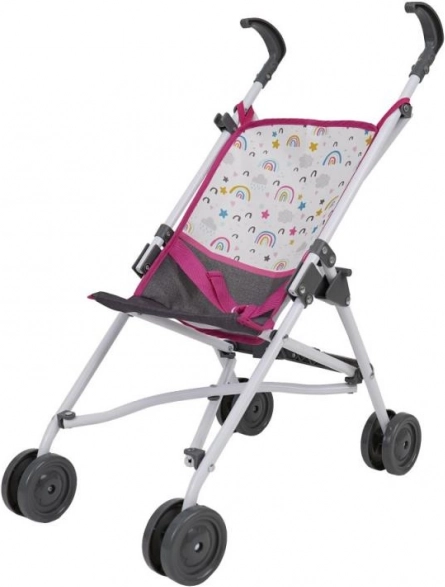 Een speelse en praktische poppenbuggy in paraplumodel met een regenbooguitvoering maakt elke kleine poppenouder blij. Geschikt voor poppen tot ca. 46 cm, heeft een handgreephoogte van ca. 54 cm en is dankzij de opvouwbare constructie makkelijk te dragen en op te bergen. Ideaal voor kinderen vanaf 3 jaar.