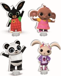Vier kleurrijke pionnen die populaire animatiefiguurtjes voorstellen waar kinderen dol op zijn. Perfect om hun verbeelding te prikkelen.