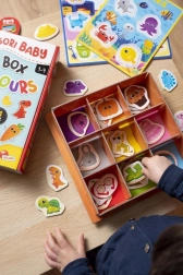 Deze kleurrijke sorteerdoos is gebaseerd op de principes van de MONTESSORI-methode en stimuleert kinderen om zelfstandig te ontdekken en te sorteren. Tijdens het spelen plaatsen en koppelen kinderen de elementen op kleur, waardoor ze op een speelse manier hun zintuiglijke waarneming ontwikkelen, tegelijk hun concentratie trainen en plezier beleven aan elke juiste plaatsing.