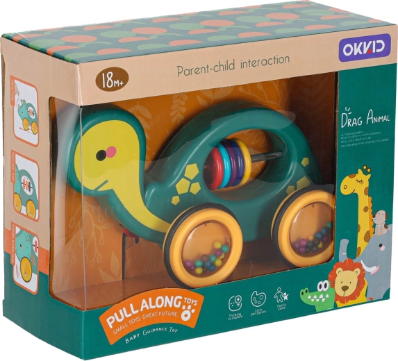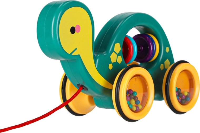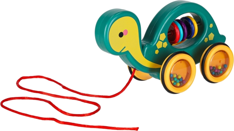Dit vrolijke trekschildpadje is een perfecte maatje voor thuis en onderweg. Dankzij het koord kan het kind het eenvoudig voorttrekken, terwijl de transparante wieltjes met gekleurde kraaltjes prettig rammelen en tot bewegen motiveren. Het speelgoed ondersteunt de ontwikkeling van grove en fijne motoriek en de oog-handcoördinatie en het begrijpen van oorzaak en gevolg.
