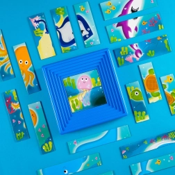 De progressieve puzzels CAROTINA Baby brengen kinderen spelplezier vanaf de allereerste stappen. Elk van de 8 puzzels heeft een verschillend aantal stukjes en verhoogt geleidelijk de moeilijkheid, zodat het kind vaardigheden op een natuurlijke manier ontwikkelt zonder frustratie. Thematische afbeeldingen uit de onderwaterwereld moedigen aan tot ontdekken en spelen.