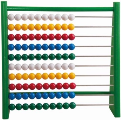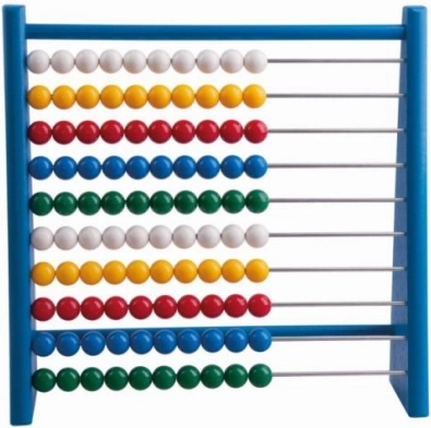 gekleurde telraam op houten standaard