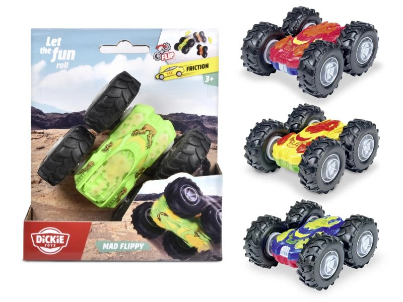 Trekauto met grote wielen en flipfunctie. Lengte ca. 10 cm.