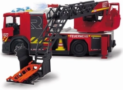 De grote brandweerauto SCANIA Rosenbauer met een lengte van 35 cm biedt kinderen realistische, actievolle speelpret. Voorzien van licht- en geluidseffecten, een uitschuifbare ladder met kooi, water spuiten, te openen zijpanelen, uitschuifbare steunpoten en een praktische reddingsbrancard. Ideaal voor creatief reddingsspel binnen en buiten.