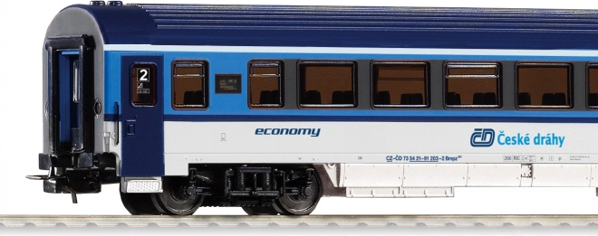 Gedetailleerd vierassig personenrijtuig Bmpz 2e klasse in de actuele RAILJET ČD-kleurstelling voor schaal H0. Biedt nauwkeurige bedrukking, realistische details en betrouwbare loop dankzij de kortkoppelingkinematica volgens NEM 362. Ideaal voor het samenstellen van een complete Railjet-trein met soepel rijgedrag, ook in kleinere boogstralen.