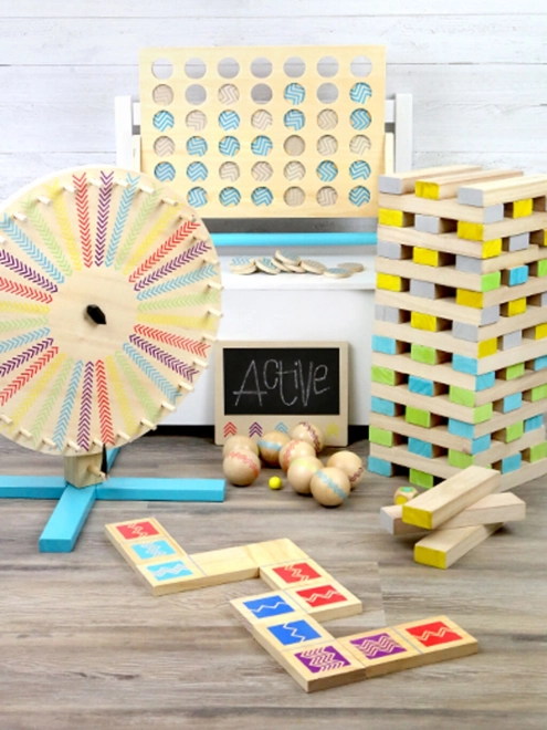 Domino XXL Active van small foot is een tijdloos gezelschapsspel in maxi-formaat dat zowel kinderen als volwassenen vermaakt. Elke steen is gemaakt van 100% FSC-gecertificeerd hout en versierd met opvallende kleuren en gearceerde patronen. Je kunt spelen op kleur of op arcering – zo trainen kinderen visuele differentiatie, concentratie en strategisch denken.