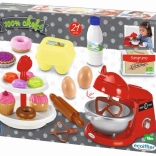 Ontdek de creatieve wereld van het bakken met deze kinderset, die een keukenrobot met mechanische functie, 2 mengopzetstukken, een mengkom en een standaard met gebakjes bevat. Inclusief eieren, deegroller en diverse desserts zoals macarons, taartjes, muffins en donuts. In totaal 21 accessoires voor uren speelplezier en fantasie.