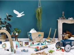 Kleurrijke blokken en een rijdende trein stimuleren de creativiteit en verbeelding van kinderen.