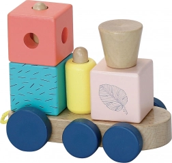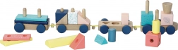 Kleurrijke houten trein voor spel en leren - multifunctioneel speelgoed dat de fijne motoriek van kinderen ontwikkelt. Stapelblokken in verschillende vormen en kleuren stimuleren creativiteit en coördinatie.