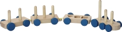 Textiele lusjes en houten kralen zorgen voor een veilige verbinding tussen de delen van de trein.