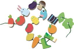 Het rijgen van verschillende vormen aan de veter bevordert de vingerprecisie, concentratie en oog-handcoördinatie al vanaf 18 maanden.