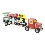 - houten vrachtwagen met aanhanger en autootjes om op te zetten
