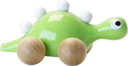 Deze houten dinosaurus betovert ieder kind met zijn opvallende groene lichaam en witte stekels op de rug.