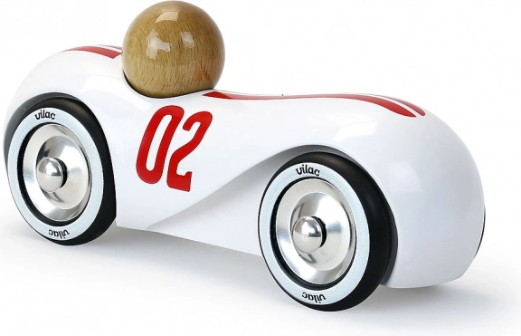 Geef kinderen én jezelf een vleugje tijdloze elegantie. De houten VILAC Streamline auto valt op door de strakke lijnen, witte lak en rode racestrepen met het nummer 02. Metalen wielen met rubberen loopvlak zorgen voor een vloeiende en stille beweging over de vloer, waardoor de auto perfect is om mee te spelen én om neer te zetten.