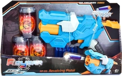 De set bevat drie plastic blikjes die dienen als doelwitten voor het oefenen van het richten, en zes zachte schuimkogels voor veilig spelen. Een perfecte keuze voor thuiswedstrijden in precisie en voor actiespelletjes met teamgenoten.