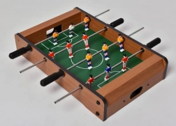 Deze kleinere tafelvoetbal is de ideale keuze voor alle voetballiefhebbers die thuis plezier willen hebben. Het is geconstrueerd van gekleurd en gelakt hout, wat zijn lange levensduur garandeert. Elk team heeft 6 spelers gepositioneerd op twee stangen die eenvoudig bediening en simulatie van een echte voetbalwedstrijd mogelijk maken.