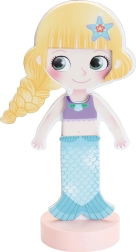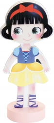 De stijlvolle ontwerpster Mia wacht tot jij haar de mooiste outfit geeft. Met de robuuste houten figuur op een stabiele standaard en magnetische onderdelen kunnen kinderen eenvoudig jurken, schoenen en accessoires combineren en zo eindeloos veel modieuze sets creëren.