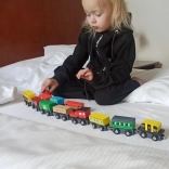 De set bevat 3 locomotieven en 9 wagons in verschillende kleuren, wat voor gevarieerd amusement zorgt.