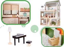 Spelen met het poppenhuis ontwikkelt de fantasie, fijne motoriek en sociale vaardigheden van het kind.