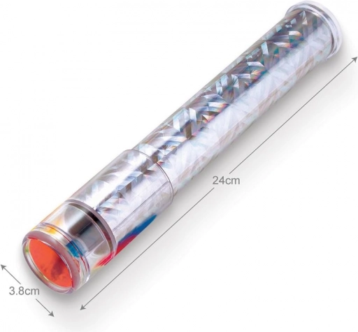 In de doos vind je alles wat je nodig hebt om een functionele caleidoscoop van ca. 25 cm te maken. Dankzij verwisselbare vullingen en versieringen kunnen kinderen unieke patronen creëren van kralen, pailletten en kleurrijke schijven. Geweldig voor het ontwikkelen van fijne motoriek, fantasie en basisoptische principes.