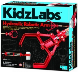 Ontdek hoe hydraulica in de praktijk werkt. Van de set onderdelen bouw je een functionerende robotarm die je bedient met spuiten en water. Elke beweging van de arm en de grijper is vloeiend en precies, zodat je gemakkelijk kleine voorwerpen kunt oppakken en verplaatsen – en dat alles zonder elektronica.