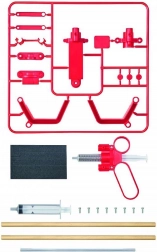Bedien de bewegingen van de arm en de grijper puur hydraulisch met spuiten en slangetjes. Een geweldige demonstratie van krachtoverdracht via vloeistof in een echt model.