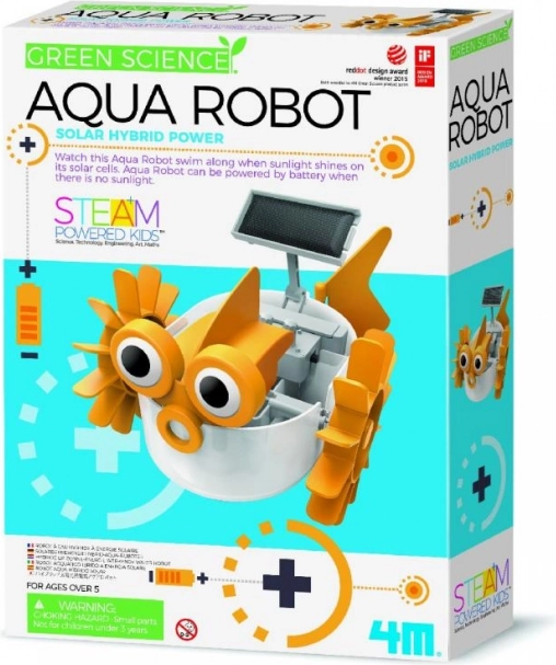 De eenvoudige bouwset ontwikkelt handigheid, logica en nieuwsgierigheid. Na het in elkaar zetten drijft de robot gemakkelijk in een kom met water, in bad of in een zwembadje en wordt zo een geweldig hulpmiddel voor STEM-leren – kinderen begrijpen hoe een zonnepaneel, motor en overbrenging werken.