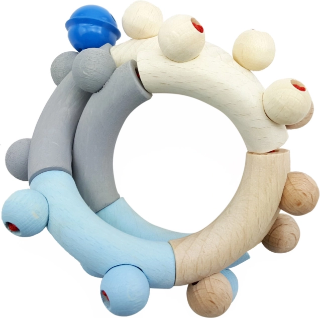 Hess Blauw Motorisch Rammelaar - hoogwaardige houten speelgoed voor de ontwikkeling van de motoriek van kinderen met milieuvriendelijke verven.