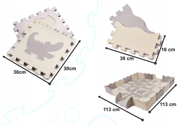 Grote schuimdelen met uitneembare dierenvormen ondersteunen het leren van vormen, creativiteit en fijne motoriek. Van de delen maak je eenvoudig een vlakke mat of een box met verhoogde randen die een veilige speelzone afbakent. Het getextureerde oppervlak is aangenaam om aan te raken en is antislip.