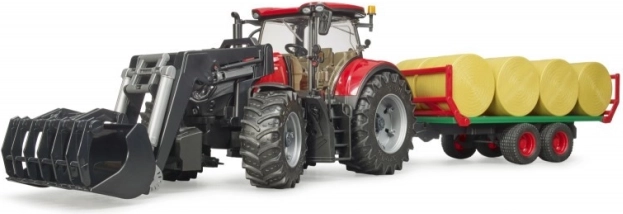 Traktor Bruder Case IH Optum 300 CVX is het ideale speelgoed voor kleine boeren, uitgerust met functionele elementen zoals een voorlader en een pakkettrailer die eindeloze speelplezier biedt.