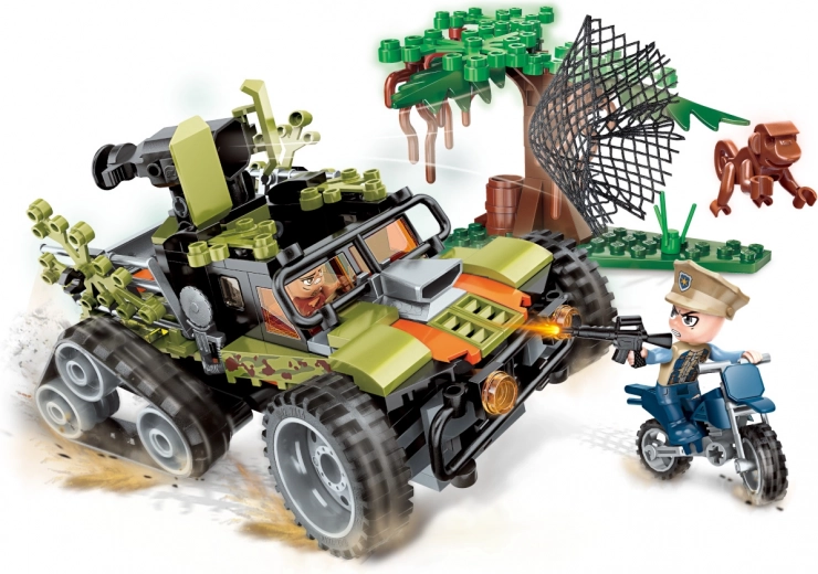 Bouw een spannende politietaak en red het aapje van de stroper! Deze creatieve QMAN Police Battle Force-set biedt een geweldige combinatie van een terreinwagen, motorfiets en een rupsvoertuig met camouflage. Dankzij de netwerper houd je de schurk makkelijk tegen en verzin je je eigen verhalen vol actie.