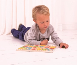 Het plaatsen van letters in precies passende uitsparingen traint de greep, oog-handcoördinatie en de focus van kinderen.