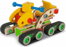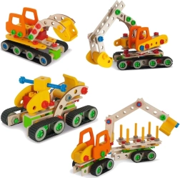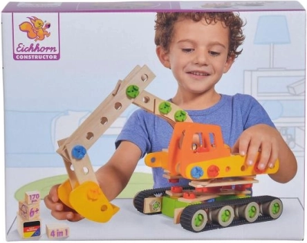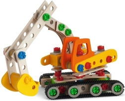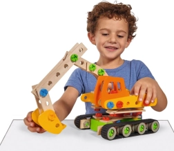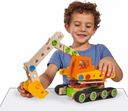 Deze kleurrijke houten bouwset laat kinderen realistische modellen bouwen met echt beweegbare onderdelen, zoals een arm of schep. Dankzij het slimme systeem van schroeven en koppelingen begrijpen kinderen spelenderwijs de principes van constructie en mechanica en oefenen ze hun vaardigheden.