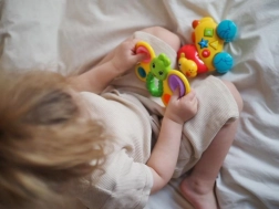 Vier verschillende zachte vullingen en contrasterende kleuren stimuleren zicht, tast en gehoor en houden de aandacht van je kind vast.