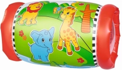 De opblaasbare rol ter ondersteuning van kruipen is een ideale hulp voor baby’s en peuters die de wereld al bewegend beginnen te ontdekken. Transparante zijkanten maken het mogelijk de twee rammelballetjes binnenin te volgen, die tijdens het rollen geluid maken en het kind aanzetten tot verder ontdekken. De vrolijke dierenprint verhoogt de aantrekkelijkheid en ondersteunt de visuele waarneming.