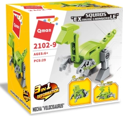 Bouw en herbouw de Qman Squros Veranderlijke Robot Velocisaurus 3v1 met behulp van 29 stukjes. Deze bouwset maakt het mogelijk om tot drie verschillende modellen te bouwen en is compatibel met Lego en andere toonaangevende merken.