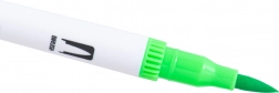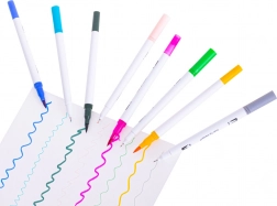 Fijne liner van 0,4 mm voor precieze contouren en schrift, bredere punt van 1–2 mm voor snel inkleuren en expressieve streken – alles in één marker.