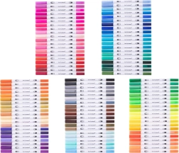 Ontdek het plezier van creëren met de set van 100 dual-tip stiften, die een complete kleurenschaal biedt voor handlettering, schetsen, bullet journal, markeren en schoolprojecten. Elke marker combineert een precise liner van 0,4 mm voor contouren en tekst met een bredere punt van 1–2 mm voor snel inkleuren.
