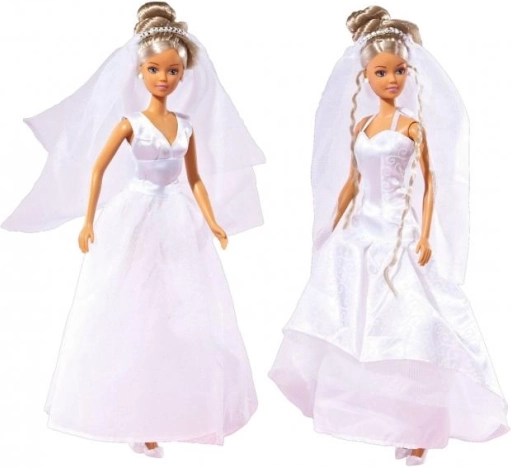 De Steffi bruidspop komt in een prachtige witte bruidsjurk met sluier, met verfijnde details en een elegante uitstraling. Een geweldige keuze voor kinderen die van modepoppen houden en magische trouwmomenten willen naspelen.