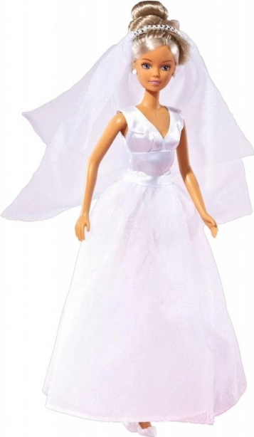 De betoverende pop Steffi als bruid in een elegante bruidsjurk met sluier maakt kleine liefhebbers van mode en verhalen blij. Dankzij haar hoogte van 29 cm en de beweegbare armen is ze ideaal voor creatieve bruiloftsspelletjes en het creëren van eigen romantische scènes.