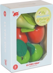 Beleef een dag “op de markt” met dit prachtige houten kistje van LE TOY VAN vol fruit. De set bevat twee rode en twee groene appels en twee groene peren met vilten blaadjes. Het speelgoed is gemaakt van duurzaam hout, geverfd met niet-giftige verf op waterbasis en ligt perfect in kleine handjes. Stimuleert fantasiespel, fijne motoriek en leren over gezonde voeding.